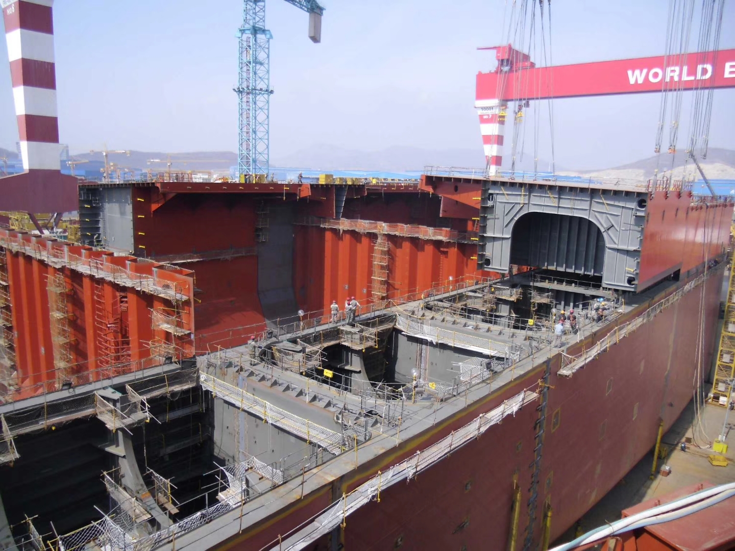 2、拆除:先提前一天用松锈剂或煤油喷洒底部固定螺栓,以便拆除时方便螺栓松动,用100吨的吊车进行吊装拆除,拆除时先焊接吊装耳再用钢丝绳固定烟囱,钢丝绳固定在吊装耳上,吊装耳应焊接牢固,焊接高度为吊装耳的钢板厚度。